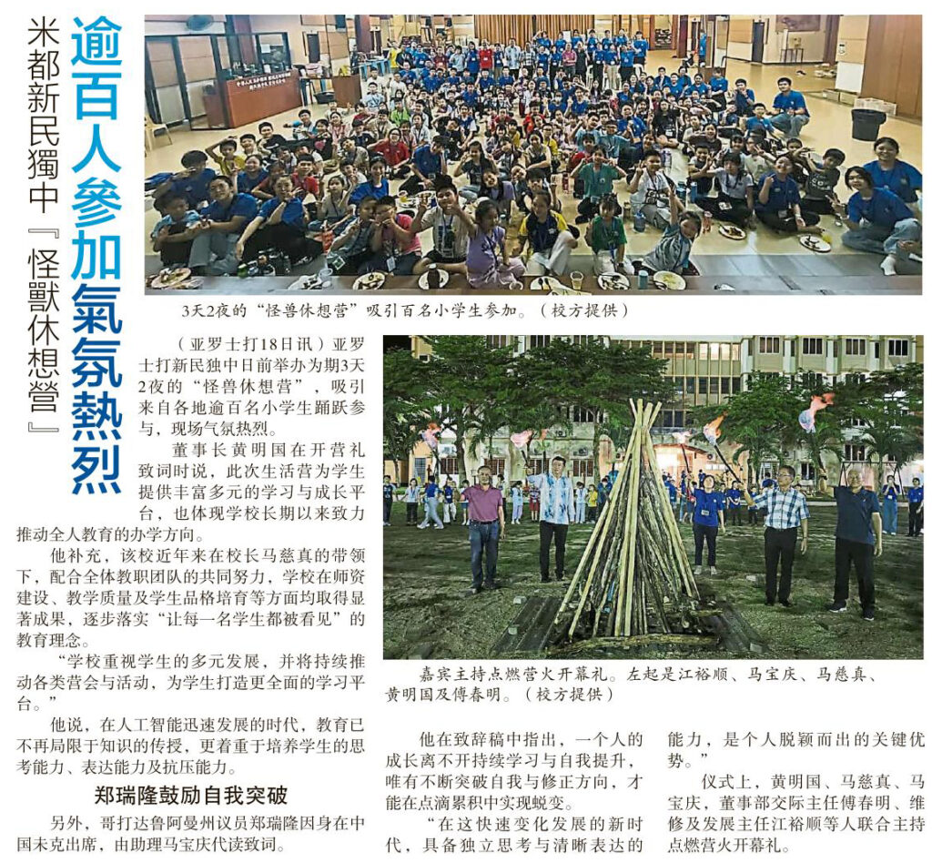 米都新民独中『怪兽休想营』逾百人参加气氛热烈